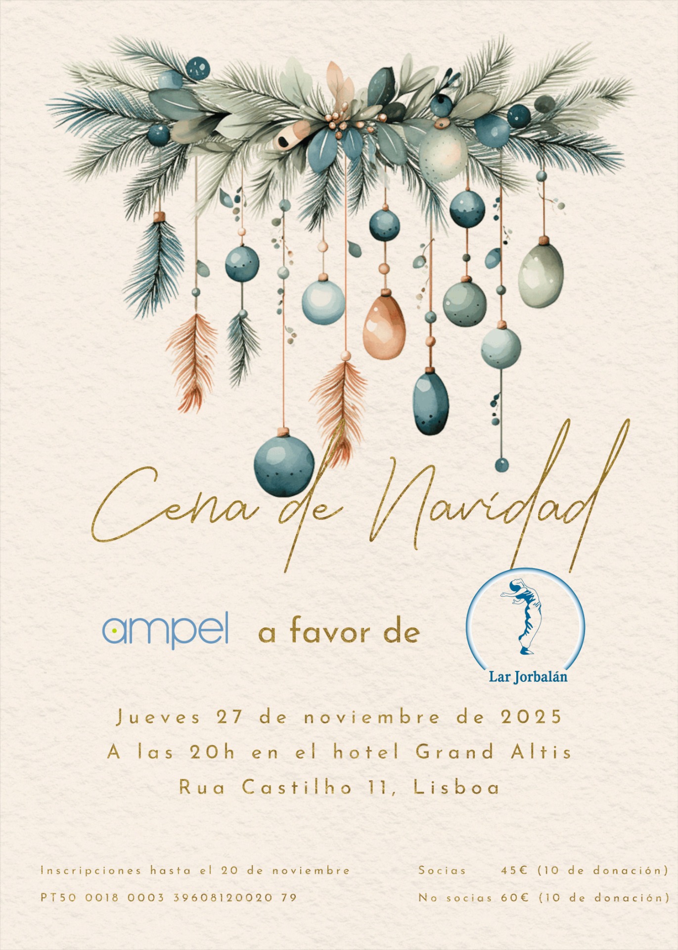 Gracias a todas las que nos acompanásteis en la cena benéfica de Navidad AMPEL 2025 a favor de Lar Jorbalán, en el Hotel Grand Altis. Gracias también a los más de 50 patrocinadores que contribuistéis con vuestros regalos para la rifa benéfica, que tuvimos que alargar más de lo previsto por el gran número de regalos que había.